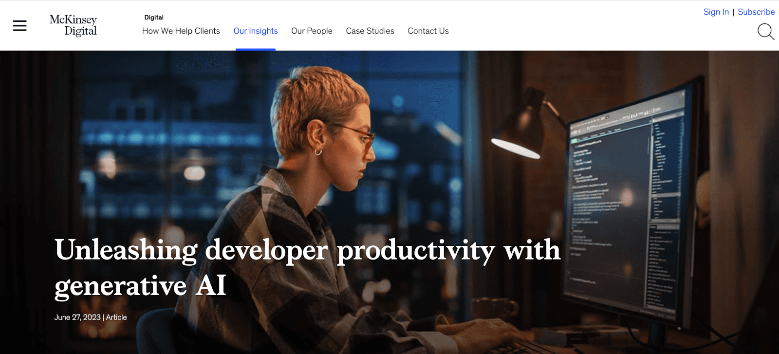 This is where things get more interesting. There are broadly two schools of thought there. The first is that since AI is going to bring down the cost of writing code dramatically, clients don’t need to outsource anymore and therefore it’s all over for overpaid developers and IT Services companies who benefit from outsourced software development. This idea was especially popular in the early ChatGPT days, and keeps recurring when demos like Devin (opens in a new tab) surface on Twitter.